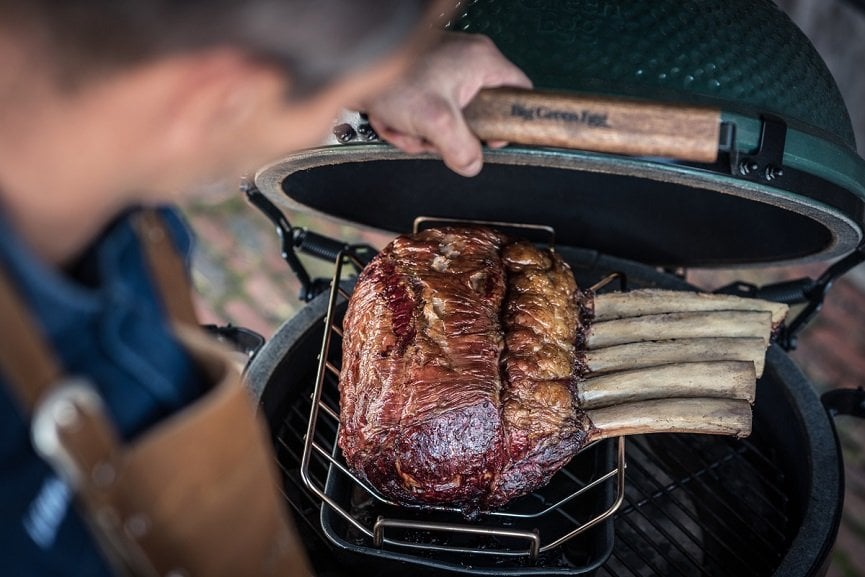 Der multifunktionale Bratenkorb ist ideal zum Braten von Fleisch und Geflügel. Aufrecht stehend ist er geeignet zum langsamen Garen von großen Fleischstücken oder Geflügel (auch gefüllt).  In umgedrehter Form ist das Gestell ideal zum Grillen von Spareribs. Da die Luft wunderbar um den Bratenkorb herum zirkulieren kann, werden damit hervorragende Ergebnisse erzielt. Ein Must-have für Fleischliebhaber.